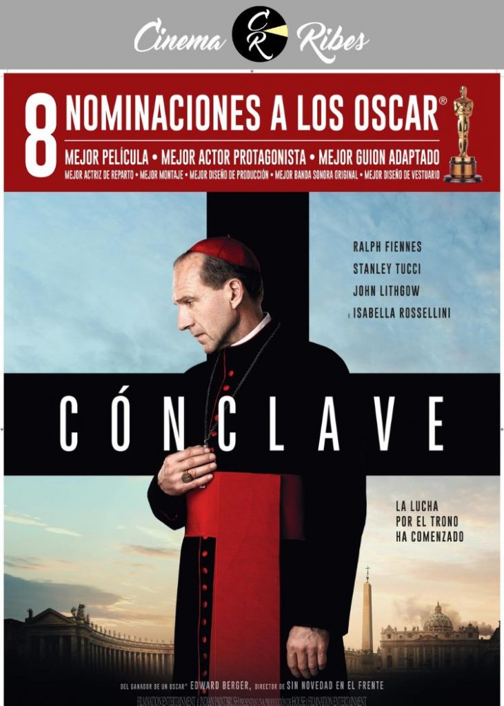 CÓNCLAVE segueix molt de prop un dels rituals més secrets i antics del món: l’elecció del Papa. Després de la inesperada mort del Summe Pontífex, el cardenal Lawrence (Ralph Fiennes) és designat com a responsable de dirigir el conclave. Quan els líders més poderosos de l’Església Catòlica es reuneixen als salons del Vaticà, Lawrence es veu atrapat dins una complexa conspiració alhora que descobreix un secret que podria sacsejar els fonaments de l’Església.
