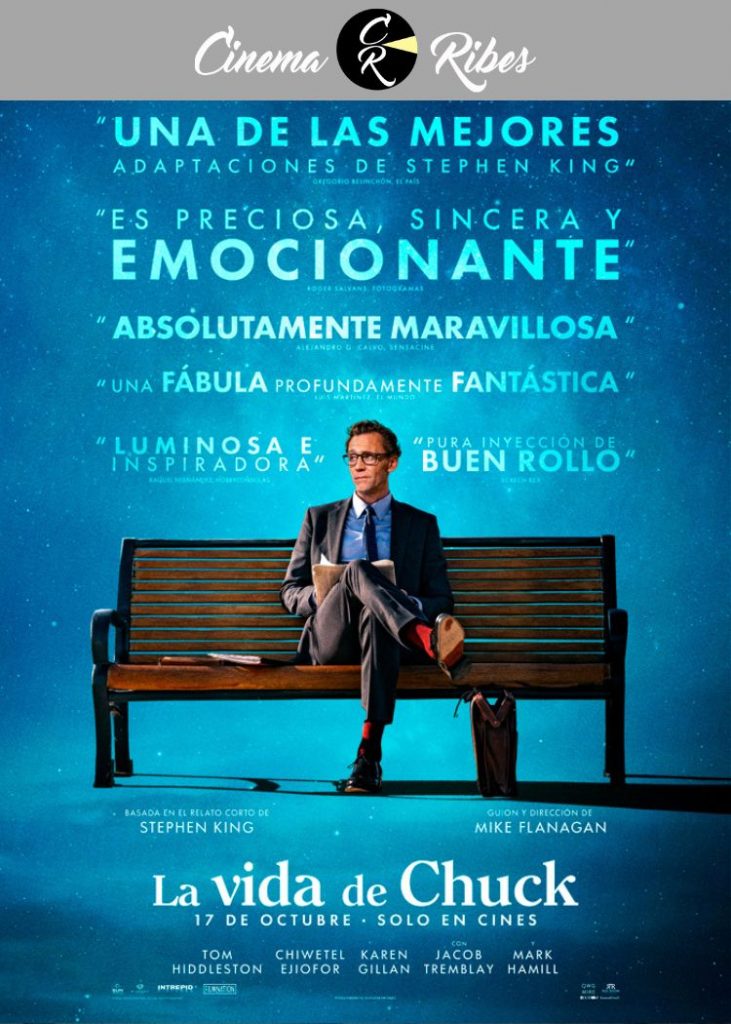 Basada en un relat de Stephen King, dirigida per Mike Flanagan i protagonitzada per Tom Hiddleston, La vida de Chuck explica una emocionant història, narrada en ordre invers, sobre un home comú l’existència del qual adquireix un significat còsmic i profund. A mesura que la cinta retrocedeix, descobrim fragments clau del seu passat: la feina, l’amor per la música, i les lluites personals. Un relat increïble que entrellaça elements realistes amb tocs de fantasia, per explorar la importància dels moments individuals a la vida i com cada persona deixa la seva empremta a l’univers.